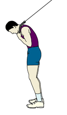 ・息を吐きながら、上半身をフロアに向けて倒していく。 (マシーンに向かっての動作は、ケースバイケースだとは思われるが、腰から折って上半身を倒すような形の方が、動作しやすいと思われる) ・戻す時も勢いよく戻さずに、なるべくウエイトの重さに抵抗するようにして戻していく。 ・目標回数:10回から15回を1セットとし、2セットから3セットが目標セット数 |
