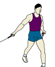 ・マシーンを背にし、両足を前後に広げてフロアに立ち、それぞれの手でハンドルを握って構える。 ・肘はピンと張ってロックさせずに、気持ち曲げておく。 ・背筋はまっすぐ伸ばし、フロアに対して垂直か、気持ち前傾させた形にする。 |