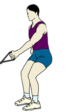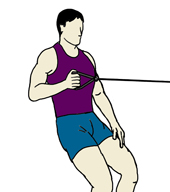 ・息を吐きながら、脇を締めてハンドルを引き寄せる。動作中は、上半身は固定して動かさない。 ・戻す時は、勢いをつけて戻さずに、なるべくウエイトの重さに抵抗するようにして戻していく。 ・目標回数:片腕10回から15回を1セットとして、2セットから3セットが目標セット数 |
