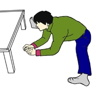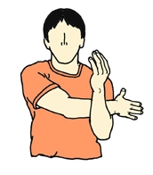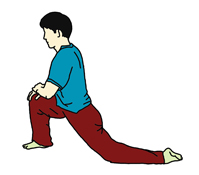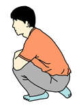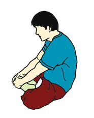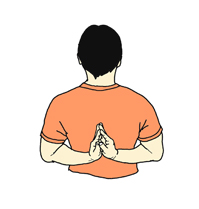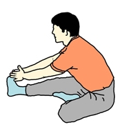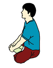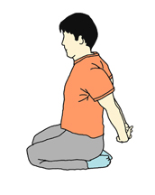 ・頭を前傾させた形 ・手を頭頂部、または後頭部に軽く添えてやるとストレッチ効果が高まる。 |