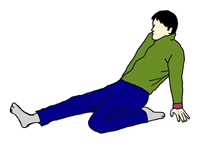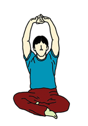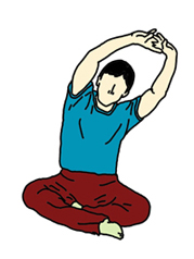 ・指を組んで頭上に伸ばし、片側に倒した形 ・倒す側とは反対側の脇腹を強くストレッチする効果がある。 |