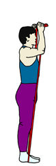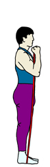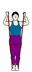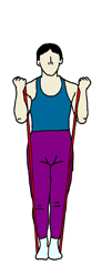 片足または両足でチューブを踏み、チューブの端をそれぞれの手で握り手の平を自分の方に向け、肩の位置くらいの高さで構える。 |