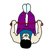 このクランチは、チューブを使わなくてもよくフロアで行われる代表的な腹筋を刺激するエクササイズです。特に腹部の前部にある腹直筋(特に上部)に刺激を与えます。 このほか、お腹を鍛えるエクササイズにはシットアップなどもありますが、上半身を上げることに意識が行き過ぎてしまうと、腹筋以外の筋肉(腸腰筋など)を使ってしまうことになりがちです。 それに対してこのクランチは膝を上げているので、腹筋以外の筋肉はほとんど使わない形になります。チューブの持っている弾力性をとことん利用してみましょう。 |