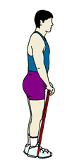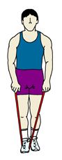 片足または両足でチューブを踏み、それぞれの手でチューブの端を握る。 |