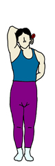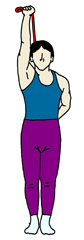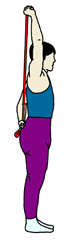 | 二の腕の裏側(上腕三頭筋)を鍛える典型的なチューブエクササイズです。両腕を用いたフレンチプレスもありますが、この片腕ずつ行う方が、刺激する筋肉への意識がしやすくやりやすいと思います。