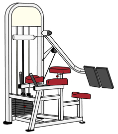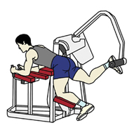 ・息を吐きながら上半身をなるべく固定して、ペダルに置いた足を後ろに伸ばしていく。 ・戻す時も勢いを付けずに、ウエイトに抵抗するようにしていくこと。 ・目標回数:片足、10回から15回を1セットとして、2セットから3セットを目標とする。 |
