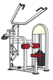 | 「ラット(lat)」は僧帽筋を表す英語の「latissimus dorsi(発音)」のことです。肩から背中にかけての筋肉を鍛えていくマシーンです。