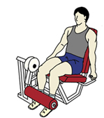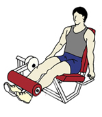 ・息を吐きながら、身体をシートや背もたれにしっかりと固定したまま、膝を伸ばしていく。 ・戻す時も勢いよく戻さずに、なるべくウエイトの重さに抵抗するようにして戻していく。 ※ときおり、勢いよく戻してプレートとプレートあてて大きな音を立てて動作している人を見かけるが、それだけは避けたい。 ・目標回数:10回から15回を1セットとして、2セットから3セットを目標とする。 |