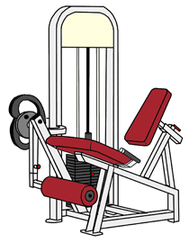 | 太ももの前の筋肉群を鍛える典型的なマシーンです。どこのフィットネスクラブでも見られるものです。