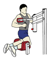 ・息を吐きながら下半身をひねっていく。 ・このとき、上半身は動かさないようにしっかりと固定し、下半身も膝を乗せた両脇にあるパッドに押しつけて安定させる。 ・戻す時も勢いよく戻さずに、ウエイトの重さに抵抗するように戻していく。 ・目標回数:10回から15回を1セットとして、2セットから3セットを目標とする。 |