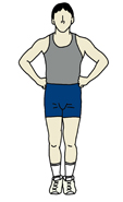 この「エルビス」ですが、レッスンを受けていた時は特に名称など気にしないで行っていましたが、このホームページの作成にあたっていろいろしらべていくうちに、「あのステップ、エルビスって言うんだ!」と始めて気がついた次第です。 なお、個人的には2カウントのもの(立った状態→エルビス→立った状態)のものだけをエルビスと呼ぶのかと思っていましたが、ステップエアロビクス同様、ヒールをタッチする4カウントのものもエルビスと呼んでいるケースもあるようなので、以下のように分けてみました。 ・エルビス:2カウントのもの(つま先だけをフロアにタッチ) ・4カウントエルビス:4カウントで「つま先→ヒール→つま先」の順番でフロアにタッチするもの |
