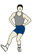 【1カウント目】気持ち腰を落としながら体を左にひねって右足のつま先をフロアに軽くタッチする。 |