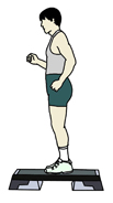 【5カウント目】右足を台の中央付近の元の位置に乗せる。 |