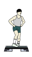 【4カウント目】右足に続いて左足をフロアに下ろす。 《他の体の回転の方法》 ・「2カウント目」までは全く体を回転させず「3カウント目」で180度体を回転させてフロアに足を 下ろす。 ・「1カウント目」で180度体を回転させながら台の上に足を乗せる。 |