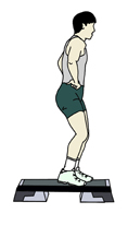 【1カウント目】右足を台の中央付近に乗せる。 |