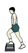 【1カウント目】右足を台の中央付近に乗せる。 |