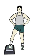 【1カウント目】右足を、台の中央よりは前方に乗せる。 |