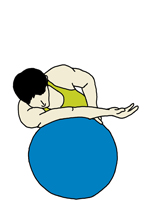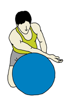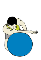 ボールを用いないでもよく行われている典型的な肩のストレッチになります。ボールが持っている弾力性をストレッチにも利用して見ましょう。