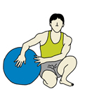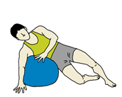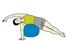 下の手をフロアについて体を支え、両足を伸ばしながら脇をボールの上に乗せていく。