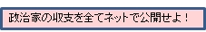 私の勘違いでなければ、まだ、ネットで各議員の収支は公開されていないと思っているのだが、だれでも気軽に見れるようにすべきである。収支のみならず、国会への出席日数や欠席理由なども一目で分かるようにしなければならない。