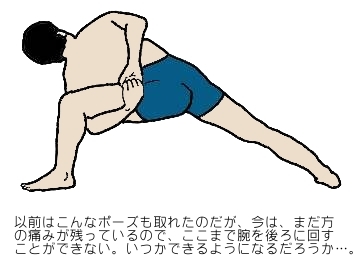 肩の痛みはかなり和らいできて普段のエクササイズではほとんど支障にならないのだが、やはりヨガあたりになると「ちょっと痛くてできない」というものもけっこうある。「前はできたのに…」などとも思ってしまう。まあ、最悪の時期から今の状態になるのにもかなりの時間がかかっているので、以前みたいにポーズが取れるようになるまでにはまだまだ時間が必要なのだろう。