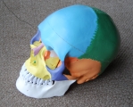 骨ごとに色分けされた頭蓋骨の模型でも大きく2つに分けることができる。それは、骨ごとに分解できるものとできないものである。そして、その「分解」にも度合があり、頭の部分だけが帽子を取るように取れる2分解のものから、一番細かいもので全ての骨がバラバラになる22分解というものもある。
