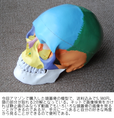 でもね〜、本当は本物の頭蓋骨の標本が欲しいだよな〜!そうすれば詳細部も理解できるし、骨質などもよく分かる。もちろん売買目的に流通などしていないだろうから「絶対無理だよな〜!」というところなのだが、ふと「身内のものが手に入るだろうか?」と考えてしまうわけである。でも、よくよく考えてみると、よっぽどへんぴな地域でない限りは火葬がほとんどなのでほぼ不可能に違いない。こればかりは諦めるしかないわけだ…。