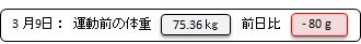 昨日は体重が少し減っていた。「75`を切るカウントダウンか!?」とも一瞬思ったが、運動前にプロテインを飲むのを忘れていたのを思い出した。