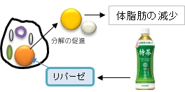 そして、脂肪細胞に蓄積された中性脂肪を分解するときに必要な酵素のリパーゼを活性化させている物質が「伊右衛門 特茶(特定保健用食品)」に含まれているので「体脂肪が減る」というのがメーカー側のうたい文句である。