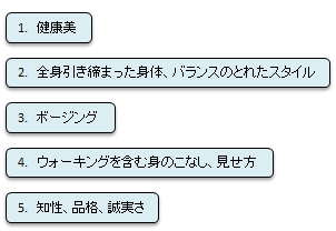 「健康的で、美しく、そして、かっこよさを追求する「世界初、男女の年齢別ミスター&ミス・コンテスト」外見と共に内面も重視し、その「知性・品格・誠実さ」を兼ね備えている事が理想の人物像といえる。