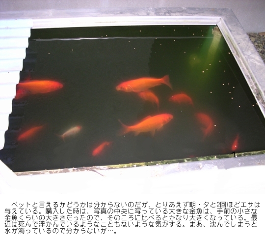 家の脇に無造作に置いてある水槽にいる金魚については何回か書いていて、重複してしまうかもしれないが再び記してみたいと思う。