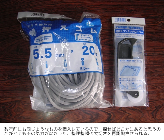 さて、昨日は私も近くのホームセンターに出かけ網戸を補修するためのゴムとローラーを購入した。網の方は数年前に購入したものがまだ残っていた。網戸の一つがボロボロになってきたので張り替えるつもりだ。まあ、きれいにできるとは思っていないが、蚊が入って来ない程度には貼れるだろう。どうでもよいが、もう網戸の本体自体がかなり疲れているというのが本当のところではあるが…。