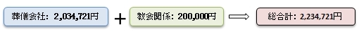つまり、葬儀にかかった費用の総合計は以下になる。