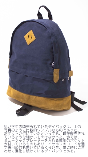 それまでも小さな「リュックサック」はあったのだが、それはピクニック用以外の何物でもなく、とても通常持ち歩くような代物ではなかったし、ポケットの数も少なかったので筆記用具や財布などの小物を入れるにはお世辞にも便利なものではなかった。よって、日常生活で利用しようなどという発想はなかった。