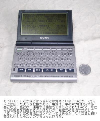 写真は、いわゆる「電子辞書」と呼ばれているものなのだが、もう10年以上前に購入したものである。私の記憶違いでなければ、海外旅行に行くために購入していると思う。書けない漢字やちょっとした事柄を調べるためだ。