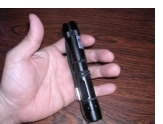 よって、自分の部屋で「え〜と、プラスを下にして入れるんだな…」と、ちょっと心拍数を上げながら電池をセットし再びキャップをした次第である。そして、スイッチの位置を確認して部屋の電気を消して真暗にし、「さあ、どうだ!」と右手の親指でスイッチを押すと、カチッという音と同時にレーザーポインターの先から力強い緑色のレーザー光が発射されたのである。