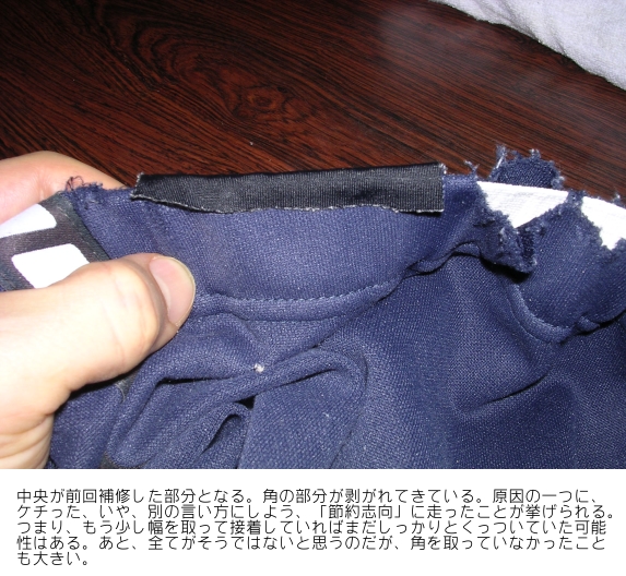 露出したことになる。そして、前回補修した部分は、一部で端の部分が剥がれているところは見られるものの、さすがにまだ1年と2ヶ月なので、擦り切れたり完全に剥がれて取れてしまっているようなところは見られない。