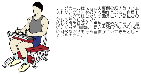 よって、膝などを痛めても、通常の1/3から1/4程度の負荷で動かしていればほとんど痛みは感じなかった。しかし、今回の膝裏の痛みは今までのものとは違い、一番軽い負荷で行っても痛むのである。これは初めての経験で、しばらくはレッグカールはできそうにもない。「やれやれ」である。