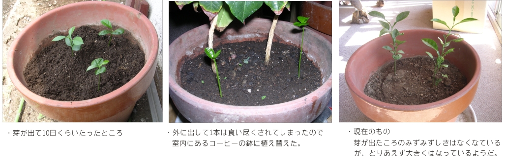 そうそう、去年植えた文旦の種だが、20個以上植えたのだが、結局、目が出たのは3つだけであった。しかも、そのうち一つは、夏、外に出しておいたらアゲハの幼虫にみごとに食い尽くされてしまった。よって、現在、鉢に植わっているのは2つのみとなる。「順調」と言えるかどうかは分からないのだが、とりあえず大きくなっているようだ。実をつけるまではまだまだ長い道のりとなりそうだ。