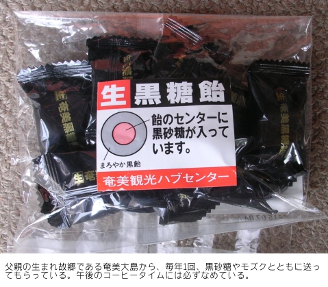 ■いや〜、昨夜は寒かった!「もう必要ないだろう」と、羽毛のジャケットも日干しをしてしまう準備をしていたのだが、再び着込んでしまった。また、夕食後にデスクについたのだが、吐く息も白くなり、たまらずデスクの上で健康茶を沸かして飲んで身体を温めてしまった。いつものように、お茶のお供は奄美名産の「生 黒糖飴」である。うわ〜、ジジくせ〜!