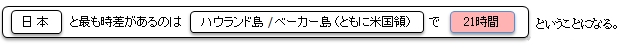 ちなみに、このハウランド島およびベーカー島よりももっと東にある米国の3つの主要な地域との時差は以下になる。