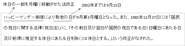 ・成人の日(1月15日) ・海の日(7月20日) ・敬老の日(9月15日) ・体育の日(10月10日)