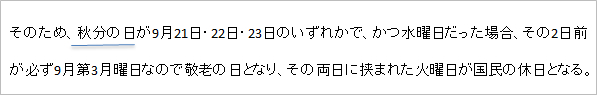 まず、「その前日及び翌日が」の「その」というのは、この場合は「9月第3月曜日の敬老の日」を指すと思われる。よって、「その前日」は日曜日である。そして、「翌日」は当然のことながら「火曜日」ということになり、「その翌日の火曜日が休日になることがあるのだろうか?」という疑問が湧いてくる。
