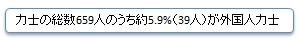 「5.9%」と聞いて「意外と少ないんだな〜」というのが正直な印象(impression)である。まあ、私などは(ほとんどの人が同様だと思うが)テレビの画面でしか相撲に接する機会はないし、今回はたまたま調べてみたが、場所が開催されているとき以外はそのような話題に触れることは一切ないので、テレビでの相撲中継を見ている限りでは「2割くらいは外国人力士なのでは…」と勝手に想像していたわけである。