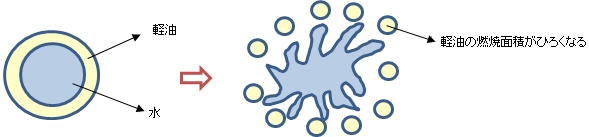 番組では「水増し軽油」であるエマルジョン燃料がなぜ通常の軽油と同じような燃焼効果があるのかを以下のように解説していた。
