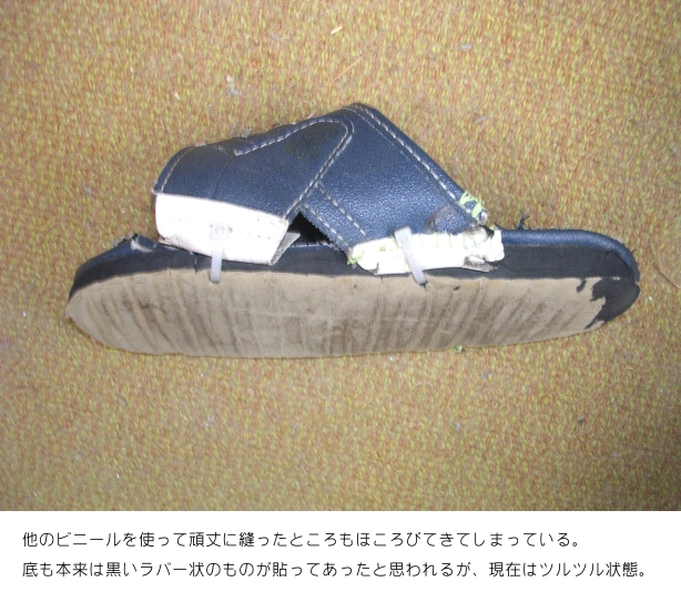 この日記でも何回か室内履きであるサンダルについては書いているが、さすがにそろそろ限界のようだ!自分で購入したものではないので金額などは分からないのだが、おそらくドラッグストアや安売りをしている靴の専門店あたりで1,000円もしない金額で購入したものだろう。