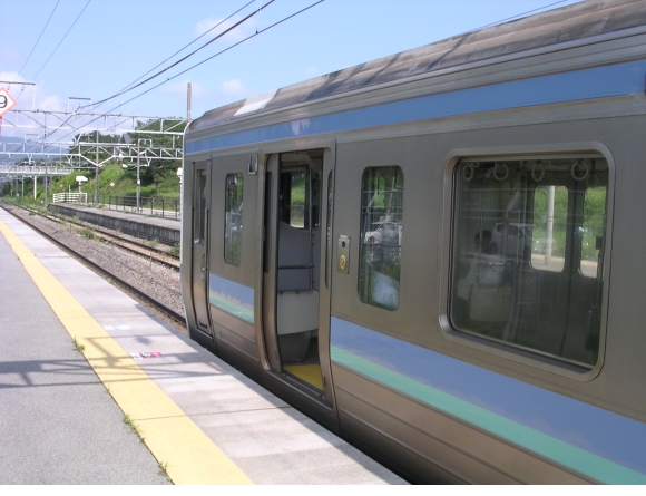 「間もなく当駅発、松本行の普通電車がホームに到着します。危険ですから白線の内側に下がってお待ちください。なお、すでに並ばれてお待ちのお客様がいますので横入りなどしないようよろしくお願いします。」というアナウンスが流れたときには、けっこう並んで待っている人がいたような気がする。