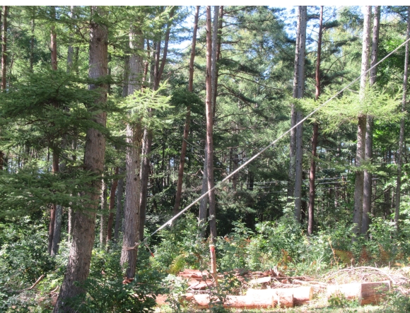 住居の横の木は全て住居の方に傾くように生えている。よってそのまま切り倒せば屋根に倒れて破損させるのは目に見えている。よって、倒したい方向にロープと手動ウインチを使って引っ張りながらチェーンソーで切れ目を入れていった。