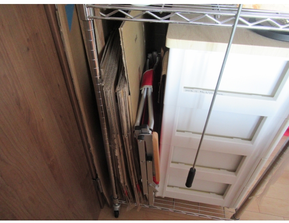 大きな段ボール箱は、そのまま取っておくのは場所を取るので、潰したり、またはカットして大きな面だけを取っておいて、将来の作品作りに備えている。これぞクリエイティブ・ライフである!