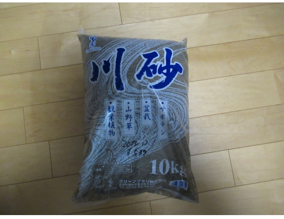 ・突然「もしもの時のために浄水器を手作りしよう!」と思った。よって、まずホームセンターで砂を購入した。1s、税込み570円。